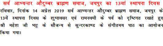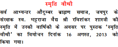 ^loZ vkH;Urj vkSnqEcj czkã.k lekt* ds X;kjgosa LFkkiuk fnol ds volj ij fnukad 14 vizsy 2016 dks t;iqj lekt ds ofj"B lnL; tks fd ljdkjh lsok ls lsokfuo`r gq, mudk lEeku fd;k x;kA